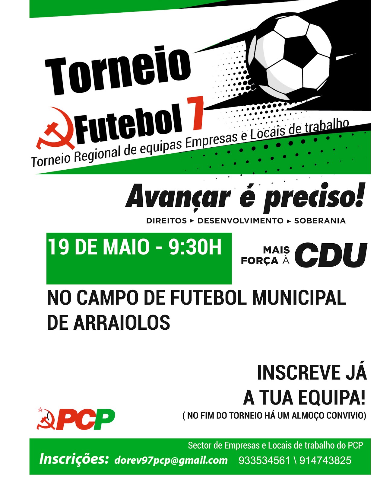 Torneio este que se realiza no dia 19 de Maio no Campo Municipal de Arraiolos, durante o haverá um momento Político e no fim um almoço convívio com os participantes.